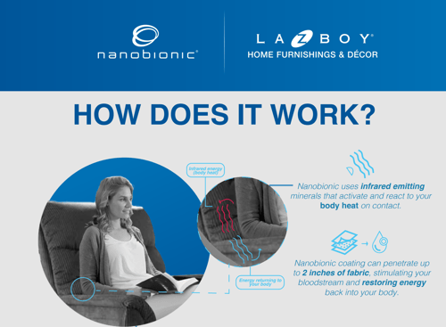 This technology has previously been used in athletic apparel, bedding, and recovery wear. La-Z-Boy is the first furniture manufacturer to integrate Nanobionic® technology directly into upholstery fabrics.