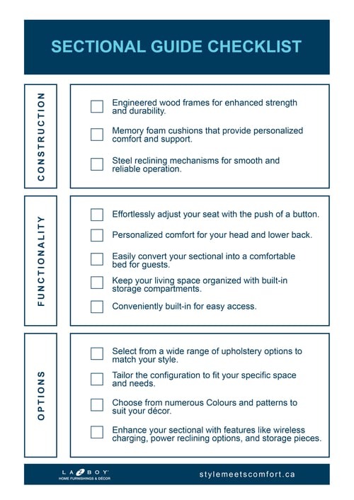 If you are considering a larger redesign, La-Z-Boy Ottawa, Gatineau & Kingston also offer complimentary interior design services. Their design consultants can create a 3D plan of your room, showing exactly how different sectional layouts will look before you make a purchase.